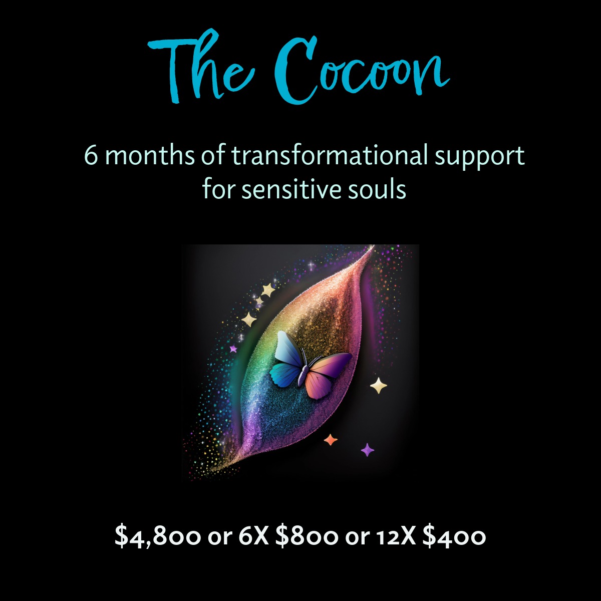 We’ll discover where you are in your metamorphosis and create a personalized cocoon that fits the you of this moment, not who you think you should become